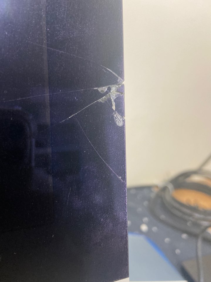 이사하다가 오른쪽 하단이 약간 깨졌더라구요.. 디스플레이에는 전혀 문제가 없어 사용하는데 불편함은 없을겁니다.